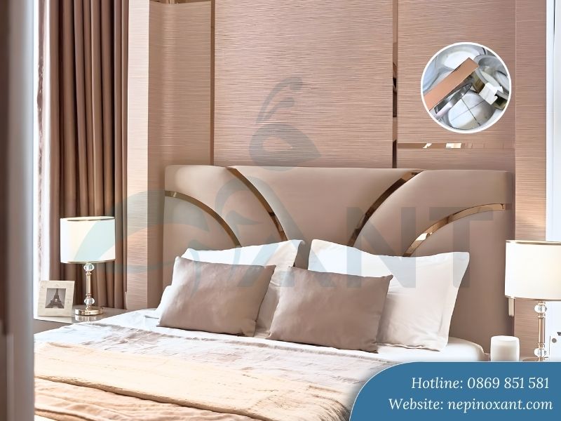 Trong trang trí vách tivi và đầu giường, thanh kim loại tạo khung viền xung quanh. Khu vực chức năng được phân tách rõ ràng với tường bao. Nhiều kiến trúc sư còn kết hợp với đèn LED ẩn phía sau để tạo hiệu ứng ánh sáng lung linh.