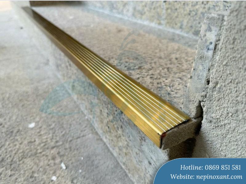 Mũi bậc là vị trí chịu lực trực tiếp nhất. Mỗi lần bước chân lên xuống, trọng lượng cơ thể tập trung vào đường viền này. Thêm vào đó, khi khuân vác đồ vật, bánh xe hành lý va chạm hay thậm chí trẻ nhỏ chơi đùa cũng tạo nên hàng trăm điểm tiếp xúc mỗi ngày. Kim loại cứng cáp sẽ đảm nhận vai trò lớp giáp bảo vệ, giữ cho đá luôn nguyên vẹn qua nhiều năm.