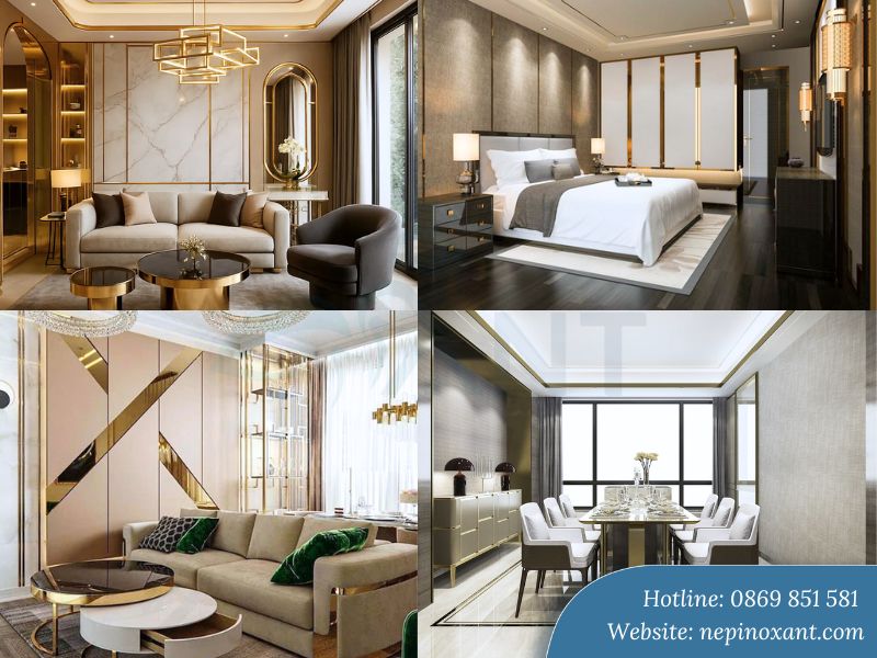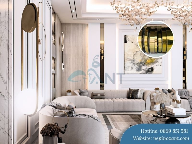 Nẹp inox được sử dụng để tạo chỉ âm, chỉ dương, trang trí vách tivi hoặc vách đầu giường. Những đường nét tinh tế này giúp không gian trở nên sống động. Nhiều dự án cao cấp sử dụng nẹp để tạo khung cho khu vực trưng bày.