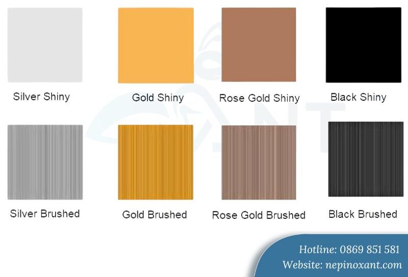 Công nghệ mạ PVD hiện đại cho ra đời các màu sắc thời thượng. Vàng gương, vàng xước, đen, trắng, hồng và nhiều lựa chọn khác đều có sẵn. Mỗi màu sắc đều có nét đặc trưng riêng, phù hợp với từng phong cách thiết kế. Khách hàng dễ dàng tìm được sản phẩm phù hợp với tổng thể không gian.