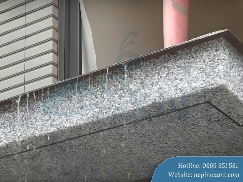 Nước mưa có xu hướng bám theo bề mặt ngang. Nước có thể chảy ngược vào trong do hiện tượng này. Nhiều gia đình thấy trần ban công bị ố vàng, bong tróc chính vì lý do đó. Sử dụng nẹp dưới giúp cắt đứt hoàn toàn dòng nước. Nẹp giúp giữ cho trần luôn khô ráo và lớp sơn được bảo vệ lâu dài.