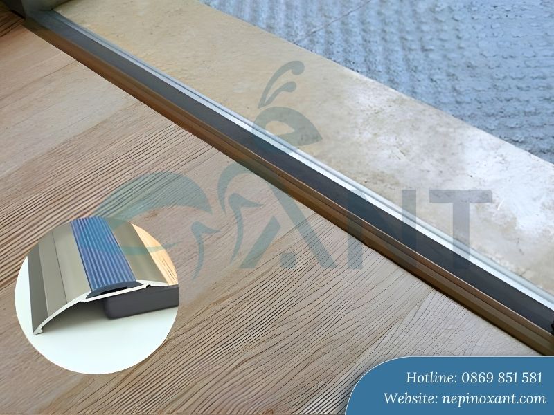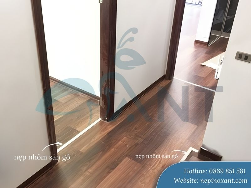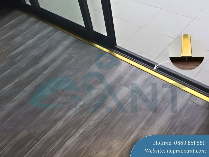 Sàn gỗ luôn cần khoảng cách giãn nở khoảng 8-12mm so với tường để tránh phồng rộp khi gỗ hút ẩm. Nẹp nhôm che khoảng cách này một cách hoàn hảo, đồng thời ngăn bụi bẩn, côn trùng xâm nhập. Tại các vị trí tiếp giáp giữa hai loại sàn khác nhau, nẹp còn tạo đường chuyển tiếp mượt mà, an toàn.