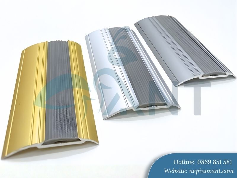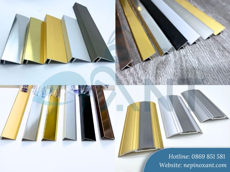 Với nhiều màu sắc và kiểu dáng khác nhau, nẹp nhôm giúp tạo điểm nhấn cho không gian. Bề mặt được xử lý bằng công nghệ mạ anode không chỉ bền màu mà còn mang lại vẻ sang trọng, tinh tế. Dù bạn chọn tông màu vàng cổ điển hay inox hiện đại, nẹp đều có thể hòa hợp tốt với màu sàn.