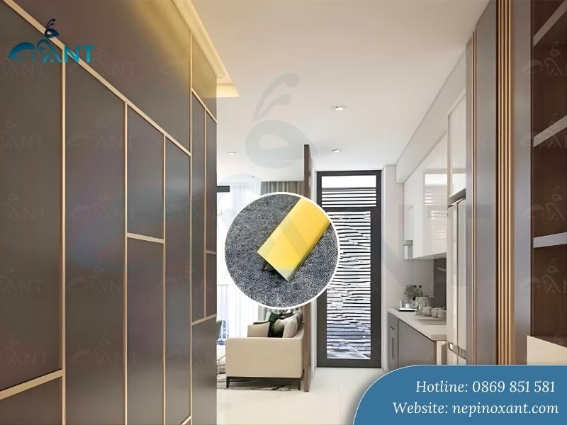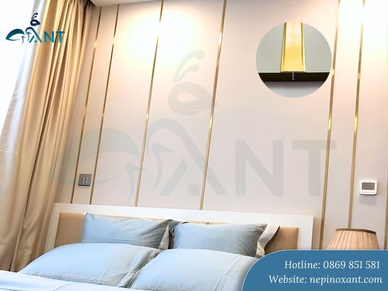 - Trang trí nội thất: Nẹp tạo đường phân chia tinh tế trên tường, sàn và trần nhà. Sản phẩm giúp phân vùng không gian mà không cần vách ngăn cứng. Điểm nhấn kim loại mang lại vẻ sang trọng, hiện đại cho căn phòng.