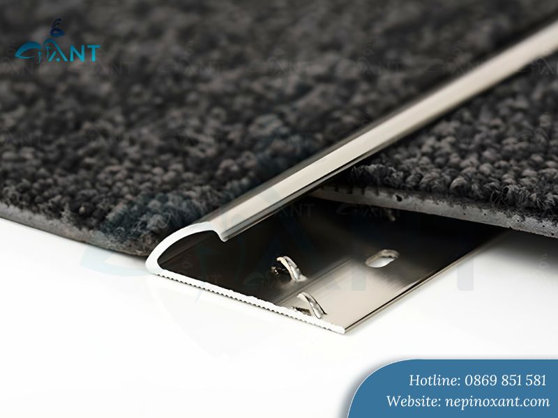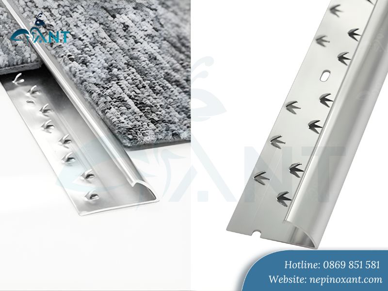 Bề mặt nẹp được thiết kế với nhiều gờ nhô lên đều đặn. Cấu trúc này giúp ghim chặt sợi thảm, ngăn hiện tượng thảm bị xô lệch trong quá trình sử dụng. Đặc biệt với những khu vực có lưu lượng di chuyển lớn, nẹp vẫn giữ thảm ổn định. Điều này kéo dài tuổi thọ thảm đáng kể.
