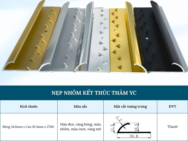 Thông số kỹ thuật nẹp nhôm kết thúc thảm YC