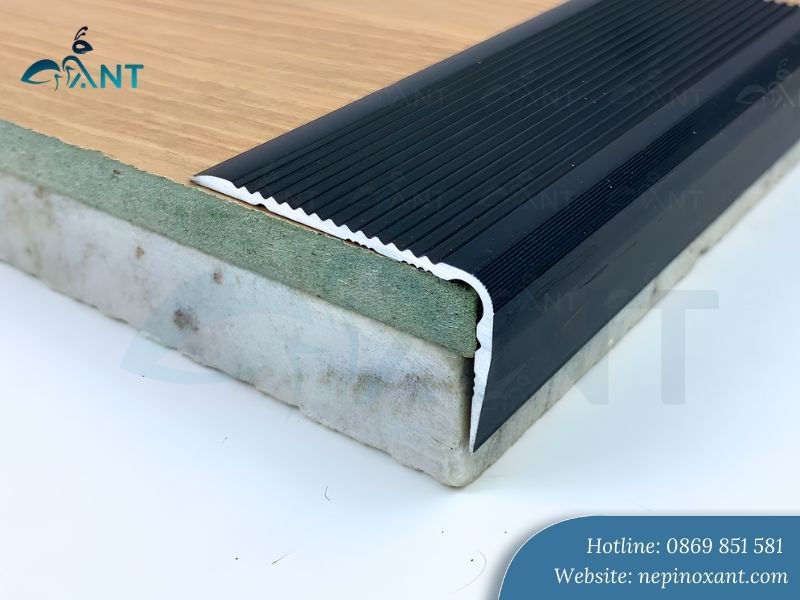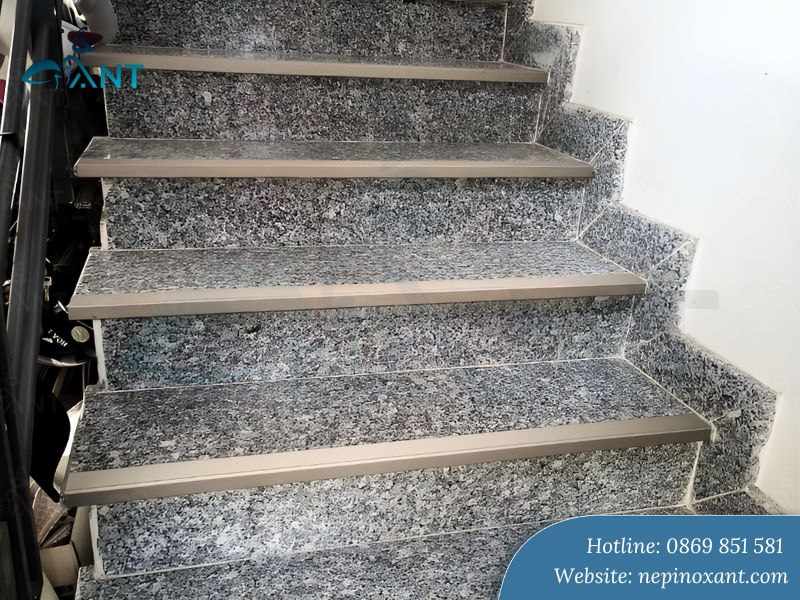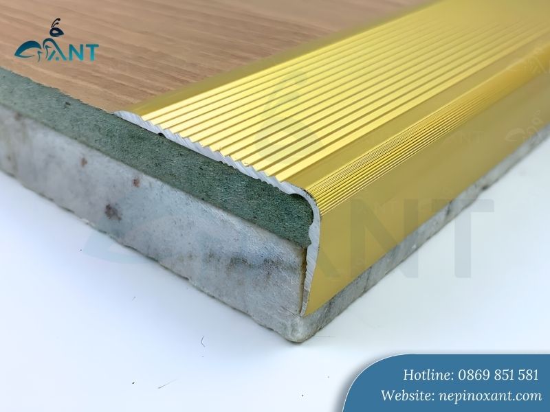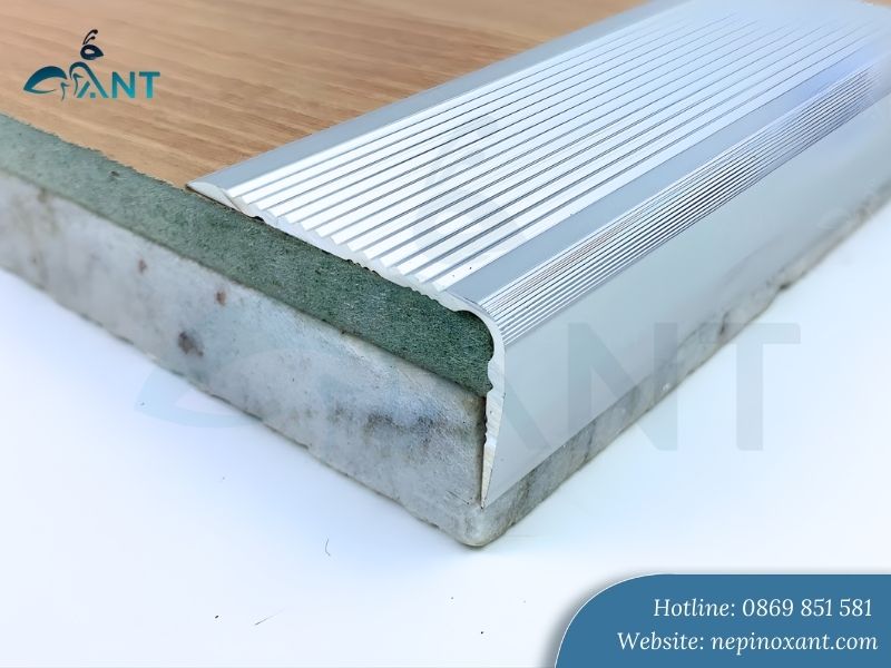 Bảo vệ góc cạnh: Lớp nhôm dày trên 2mm che khuyết điểm tại điểm tiếp giáp giữa các vật liệu. Nẹp gia cố góc bậc thang, tránh sứt mẻ khi có va chạm. Giải pháp này kéo dài tuổi thọ cho cả hệ thống cầu thang.