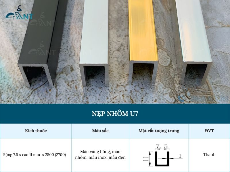 Thông số kỹ thuật chi tiết nẹp nhôm U7