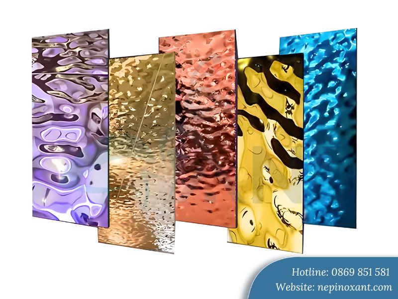 Tấm inox sóng nước là sản phẩm được chế tác từ inox 304 hoặc inox 201, qua công nghệ dập nổi bề mặt tạo hiệu ứng vân sóng ba chiều. Kỹ thuật này giúp bề mặt kim loại trở nên sinh động, phản chiếu ánh sáng theo nhiều góc độ khác nhau. Giúp tạo cảm giác như đang nhìn xuống mặt nước.