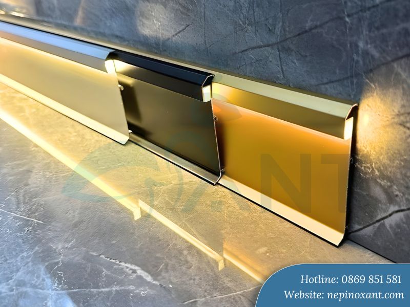 Về công nghệ màu: Chọn nẹp xử lý bề mặt bằng phương pháp mạ anode thay vì sơn tĩnh điện. Lớp màng anode thấm sâu vào kim loại, bền màu và chống ăn mòn tốt hơn. Điều này quan trọng ở khu vực ẩm ướt như nhà vệ sinh, ban công.