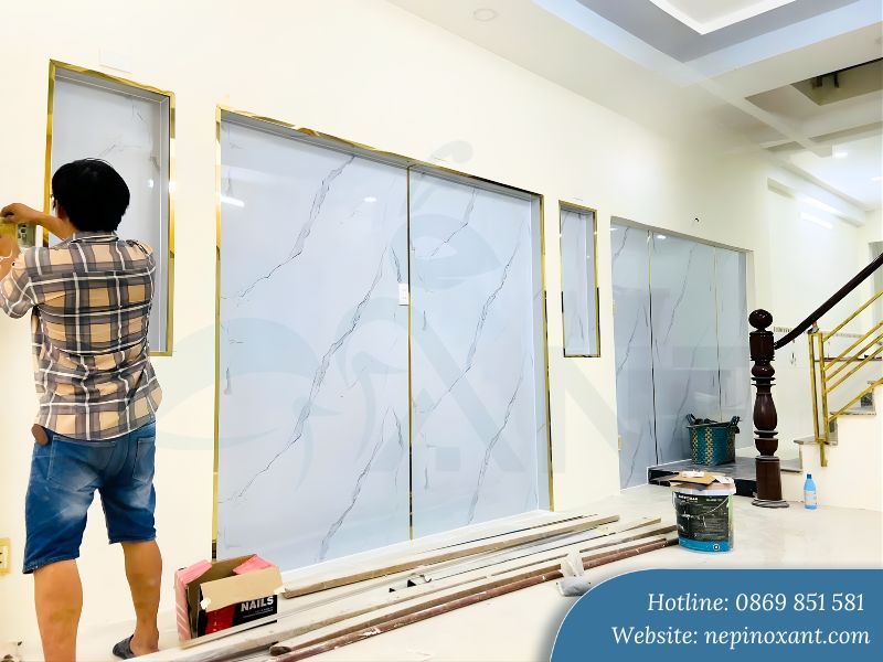 Vệ sinh sạch sẽ toàn bộ bề mặt cần thi công, loại bỏ bụi bẩn và dầu mỡ. Đo đạc chính xác từng đoạn để cắt nẹp đúng kích thước, tránh lãng phí vật liệu và đảm bảo thẩm mỹ.